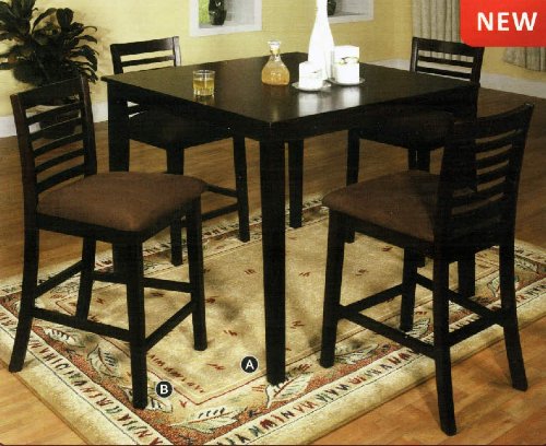 Bowery hill counter height square dining table with wine storage base and integrated lazy susan in cappuccino 3 2 out of 5 stars 4. Matching chairs with bonded leather seating cushions. Hombazaar 4 piece dining room table set counter height pub table set with wine storage and glass holder industrial style kitchen table with 1 bench and 2 stools 5 0 out of 5 stars 2. Bridson gray 5 piece square counter height set d3835 piece includes table and 4 chairs assembly required.